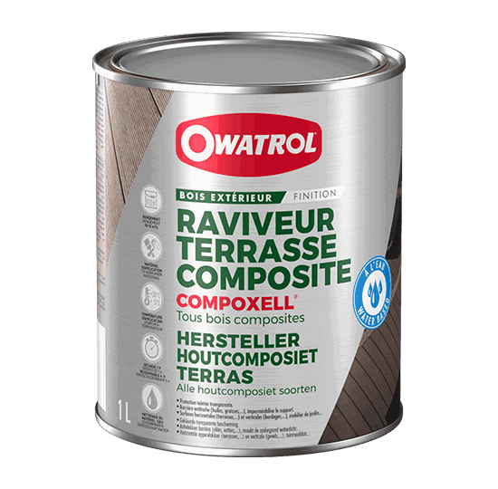 Geef je composiethout een nieuwe look met Owatrol Compoxell, een watergedragen afwerking voor terrassen en gevels. Deze slijtvaste, vlekbestendige coating maakt oppervlakken waterdicht, beschermt tegen UV en weer, en droogt snel tot een stijlvolle zijdeglans!